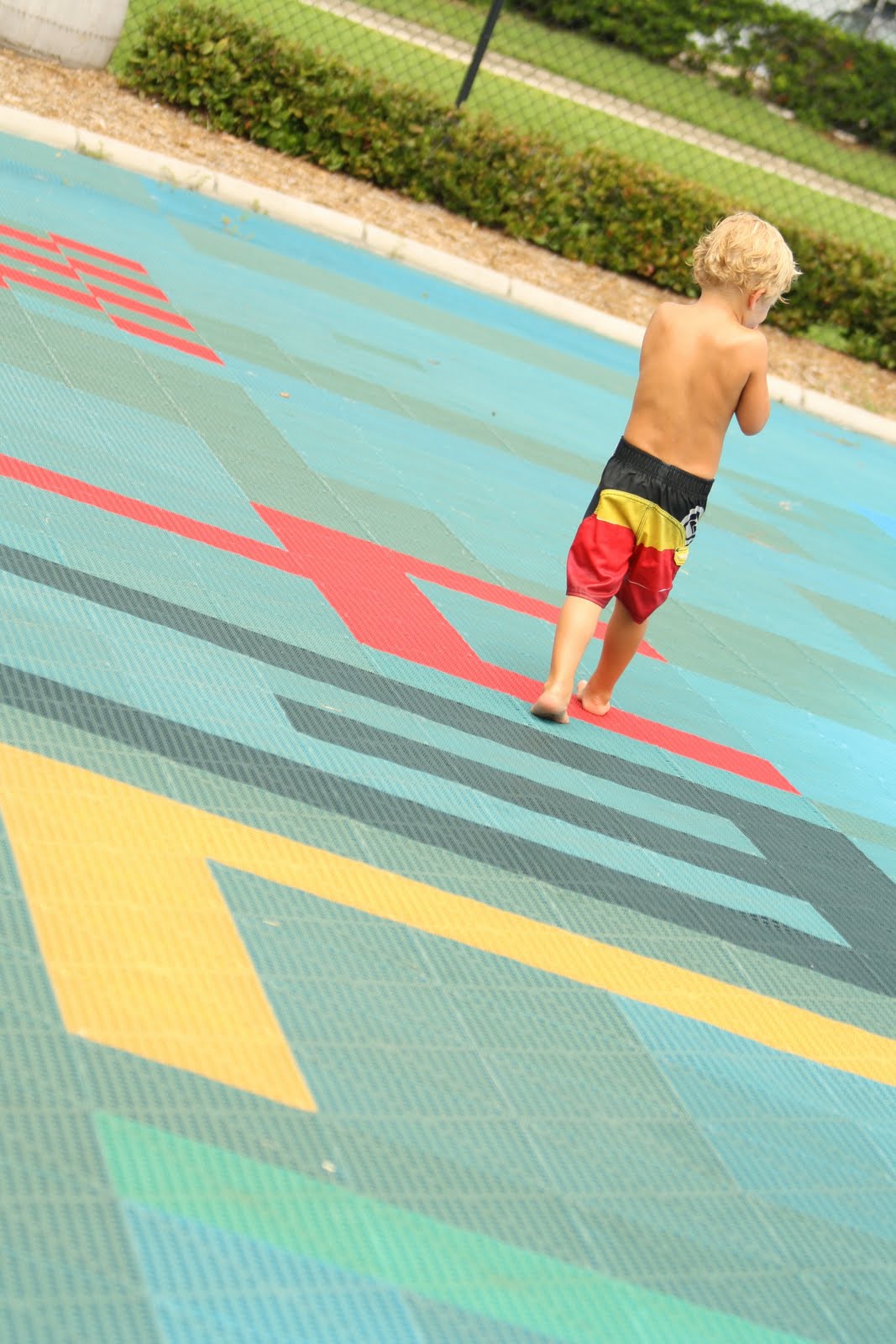 they boys found that the kiddie pool is a great place to try all sorts of trick moves.